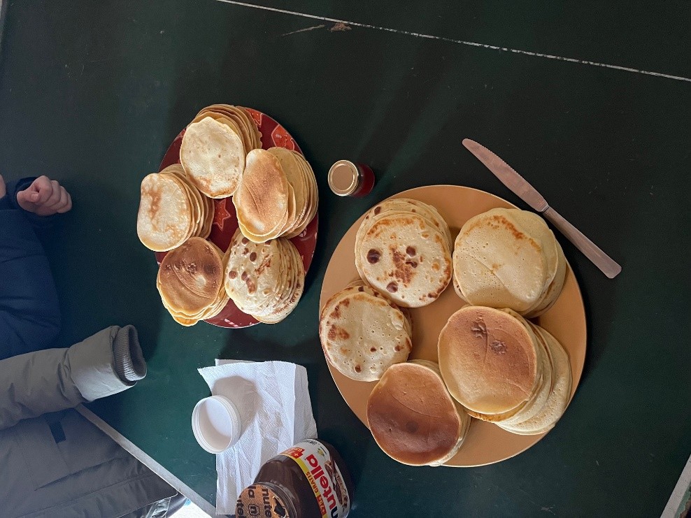Merci à Mme Dujardin qui a pris le temps de nous préparer une centaine de crêpes !