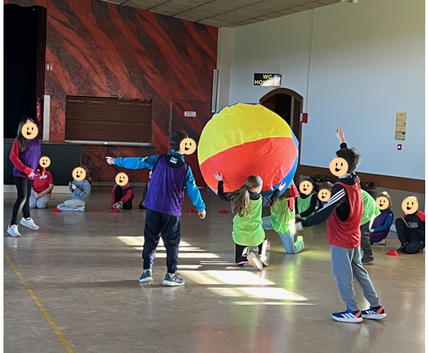 Les élèves de Mulhausen ont essayé un nouveau sport : le Kinball.C’est un jeu en équipe avec une grande balle (1m22); il faut constituer 4 équipes de 4 joueurs. Le but du jeu est de lancer la balle en hauteur et l’autre équipe ne doit pas la rattraper… tout ça en moins de 15 secondes !