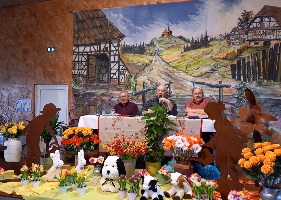 Les trois compères, Michel, Henri et Germain vous attendent derrière leur «  Stammtisch » pour un après-midi de rire et de détente autour des blagues en alsacien.
