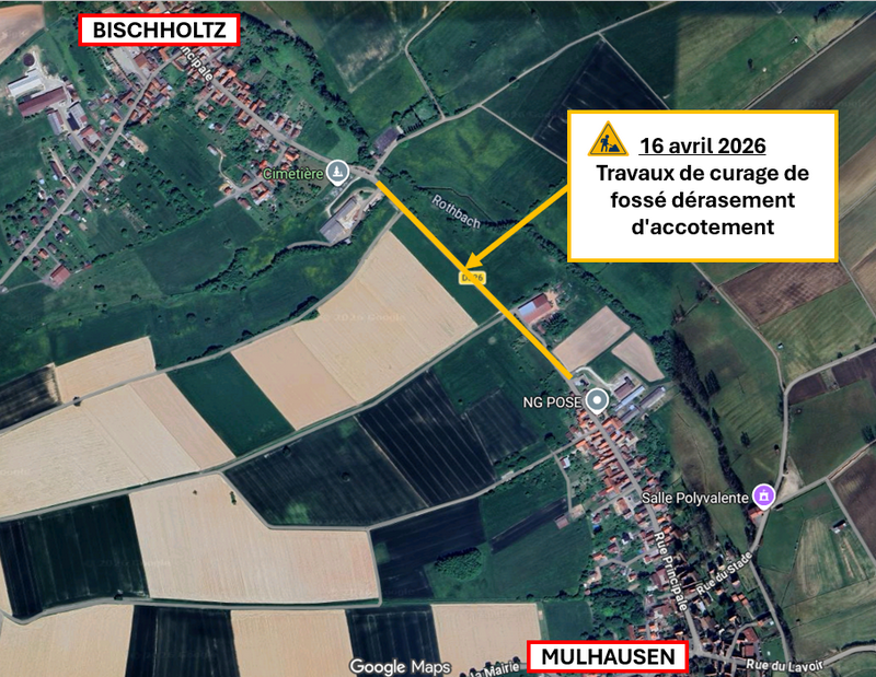 La Collectivité européenne d'Alsace communique : A compter du Jeudi 19 Juin 2025 et jusqu'au Mardi 24 Juin 2025 inclus, sur la D234 du PR 007 + 0251 au PR 009 + 0084, dans les deux sens de circulation, sur les communes de Mulhausen et de Schillersdorf, la circulation est interdite à tous les véhicules. |