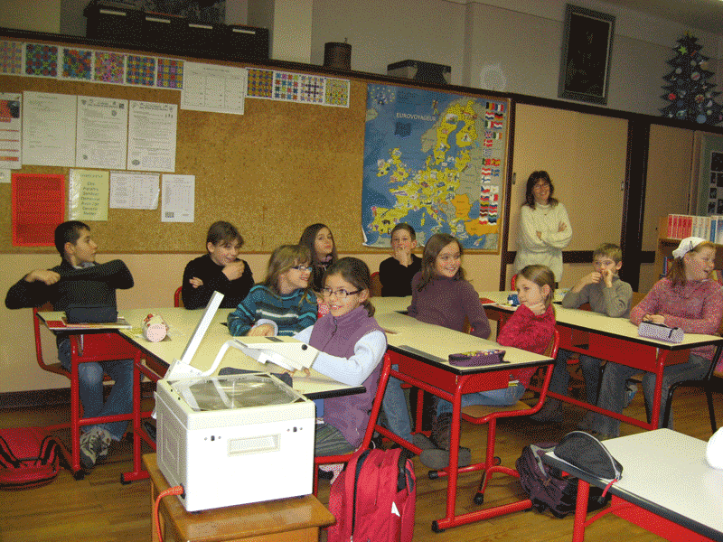 En 2006, M. Jund avait fait une première intervention. La classe avait gardé la grande carte comportant les différents pays membres de l'Union, les symboles les caractérisant chacun et leurs drapeaux nationaux respectifs.